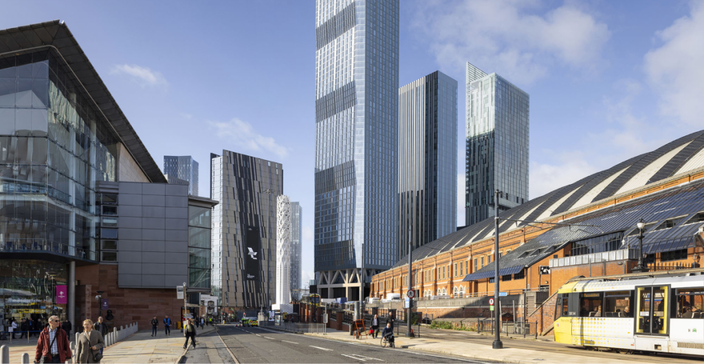 The flagship tower will include the Nobu Hotel and Restaurant made up of a 160-bedroom hotel and 452 branded residences, marking Nobu’s debut in the UK’s luxury real estate market. A second 23-storey building on Great Bridgewater Street will provide 133 new apartments aimed at the affordable homes market.
